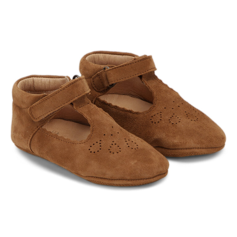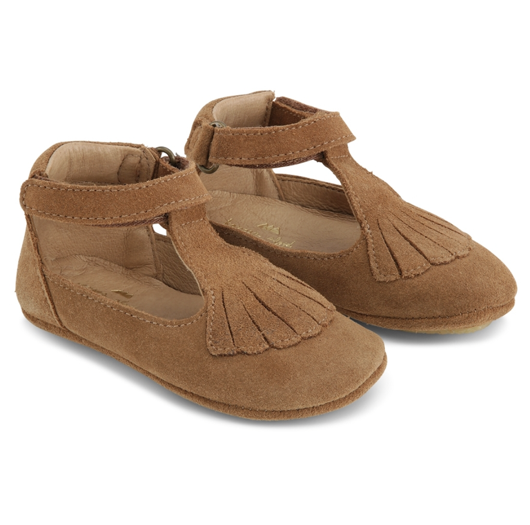 - Chou sandal: een lichtroze leren sandaaltje, schoentje in Mary Jane stijl. Met een mooi open patroon (in de vorm van een zon) op de neus. Gemakkelijk aan en uit te trekken door de klittebandsluiting. Voorzien van een zachte binnenzool en een mooie geborduurde rand. De chou sandaaltjes van Konges zijn er van maat 21 tot en met 28.