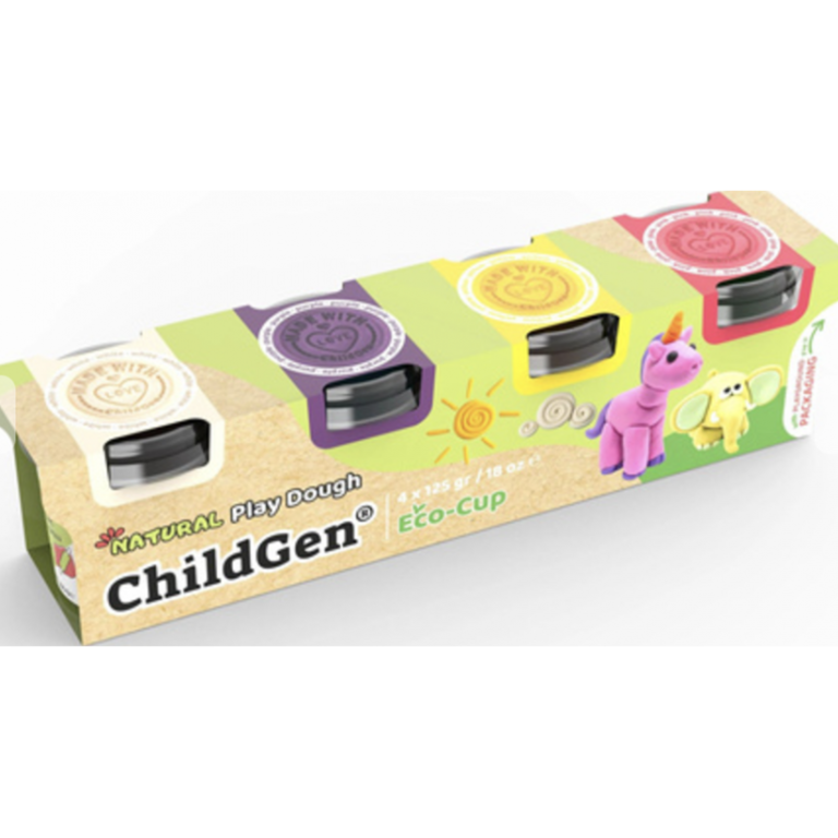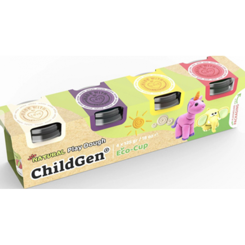 Childgen PLAY DOUGH ECOCUP 4 PCS -WHITE-PINK-PURPLE-YELLOW - Fée Babyboetiek