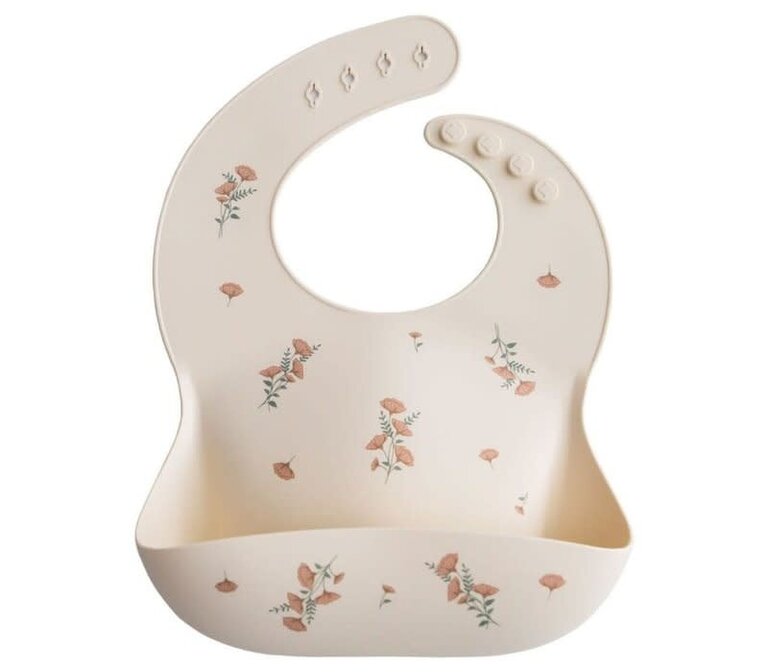 Mushie Silicone Bib / Pink Flowers - Fée Babyboetiek